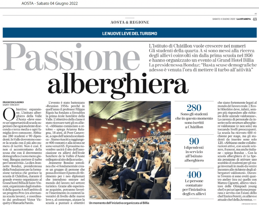 All’evento hanno preso parte anche gli ex direttori e dirigenti dell’istituto (tra i quali Maria Pia Praz, Annalisa Baratta, Carla Emanuela Ocenasek e Monica Pignataro) e i ragazzi dell’Ecole Hôtelière di Thonon, presenti a Châtillon in occasione dello scambio tra le due scuole.